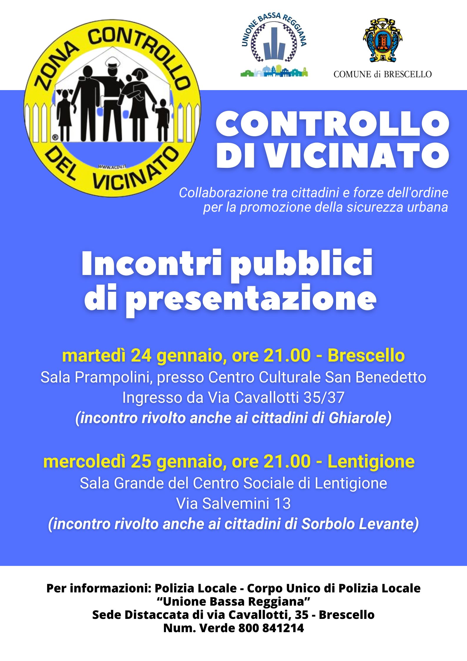 Per informazioni: Polizia Locale - Corpo Unico di Polizia Locale “Unione Bassa Reggiana”
