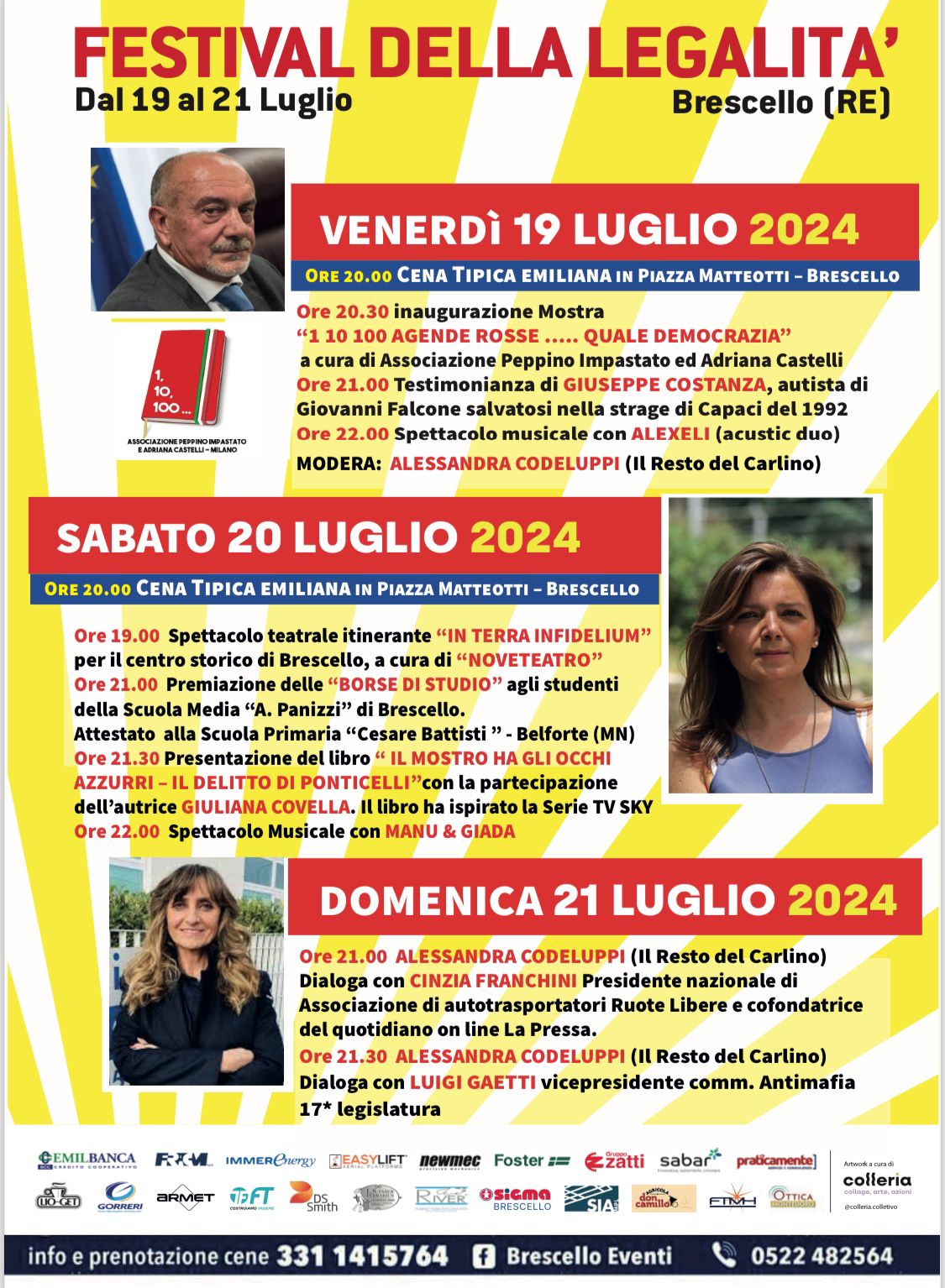 promosso dall'associazione Daccapo APS, con il patrocinio del Comune di Brescello e in collaborazione con la Commissione Mista della Legalità. ATTENZIONE: si rende noto che, a causa di problemi legati al volo aereo, Giuseppe Costanza ha comunicato di dover rinunciare alla sua partecipazione all’evento in programma previsto per stasera. Verrà sostituito da Luigi Gaetti che per l’occasione presenterà il suo ultimo libro.